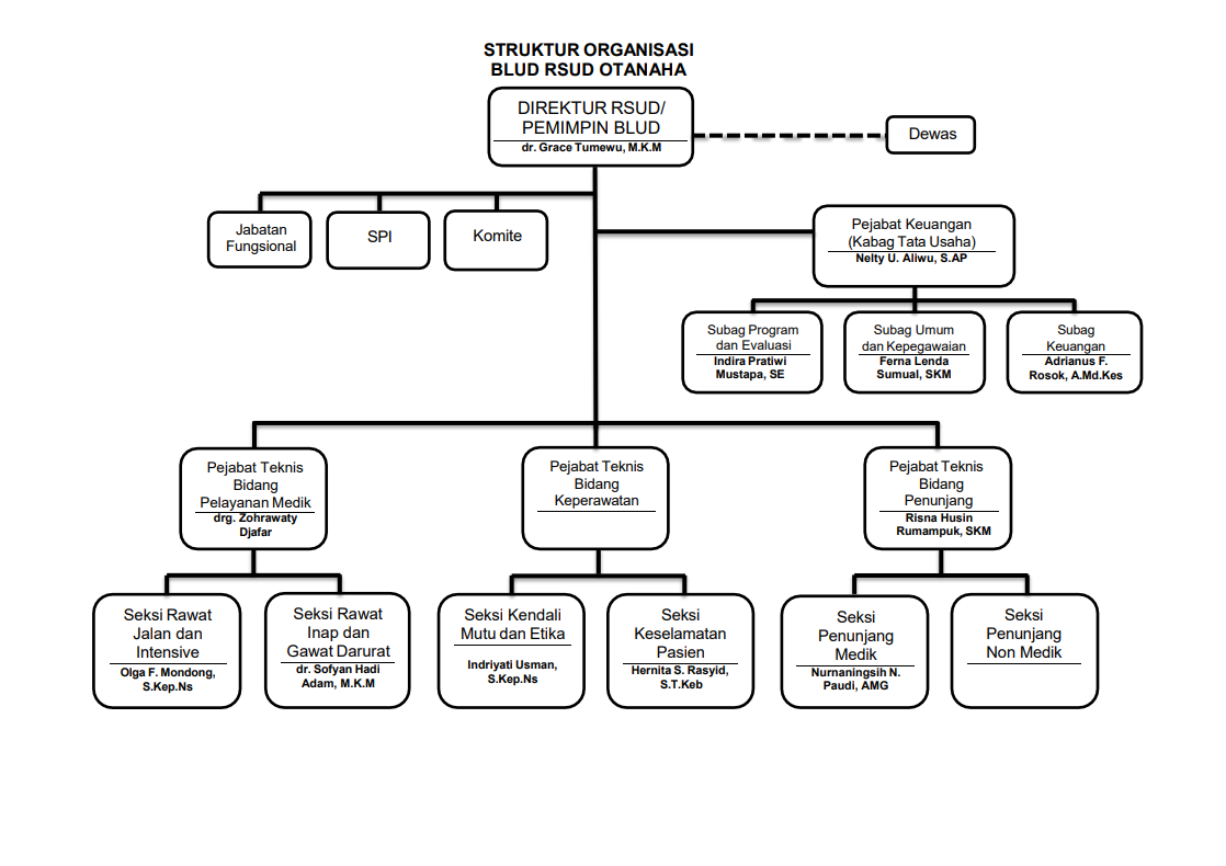 Organisasi dan Tata Kerja Rumah Sakit Umum Daerah (RSUD) Otanaha Kota Gorontalo awalnya ditetapkan berdasarkan Peraturan Daerah (Perda) Kota Gorontalo Nomor 11 Tahun 2010 tanggal 30 Agustus 2010. Struktur organisasi tersebut kemudian diperbarui dan diatur ulang menjadi Unit Pelaksana Teknis Daerah (UPTD) di bawah Dinas Kesehatan Kota Gorontalo melalui Peraturan Wali Kota Gorontalo Nomor 37 Tahun 2021 tanggal 18 Oktober 2021. Selanjutnya, pada tahun 2024, status operasional rumah sakit berubah menjadi Badan Layanan Umum Daerah (BLUD) berdasarkan Surat Keputusan (SK) Wali Kota Gorontalo Nomor 147/11/III/2024 tanggal 4 Maret 2024.